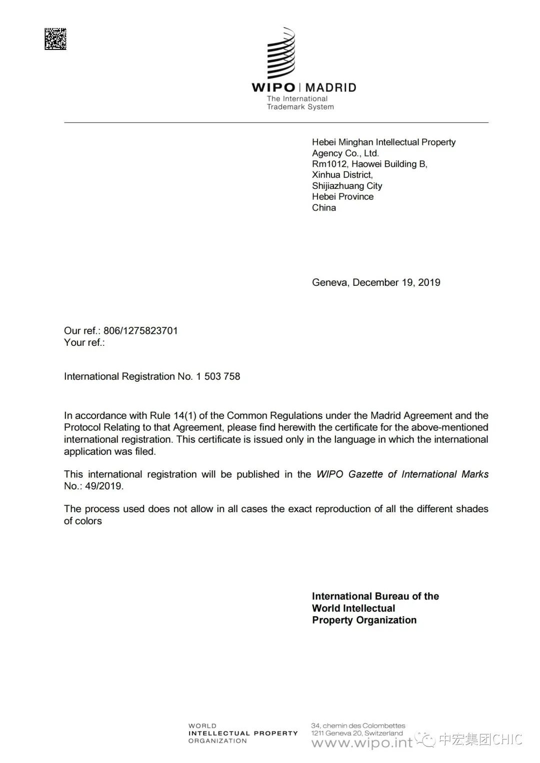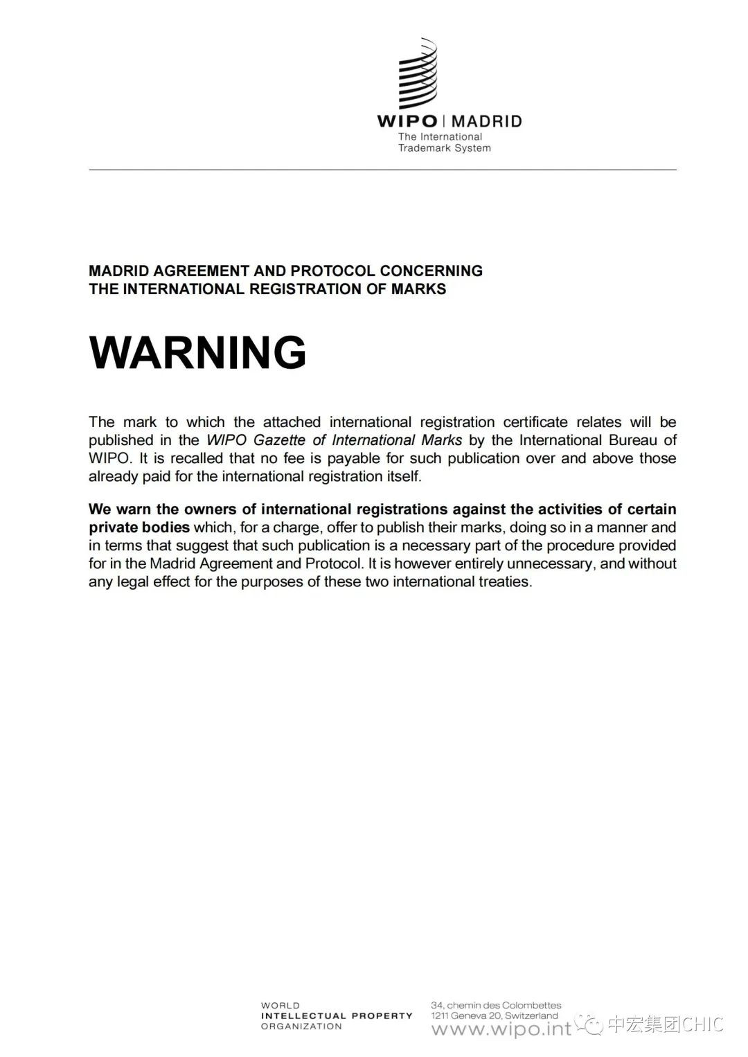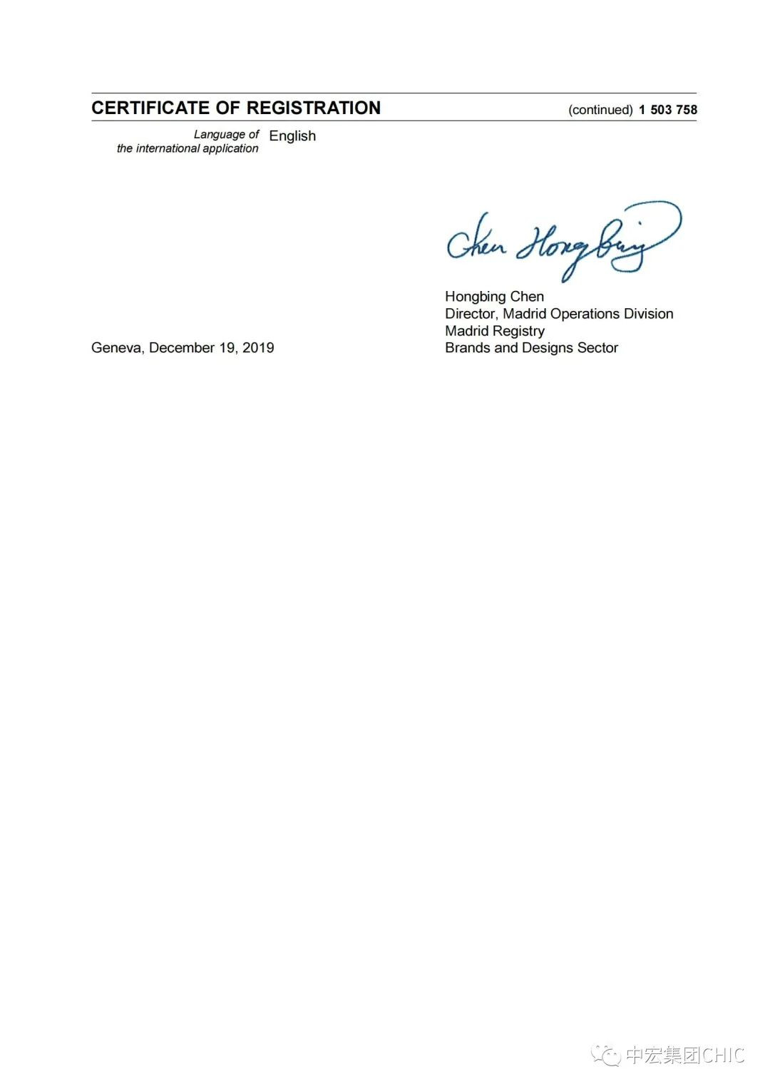 【喜報】中宏集團(CHIC)成功申請馬德里國際商標