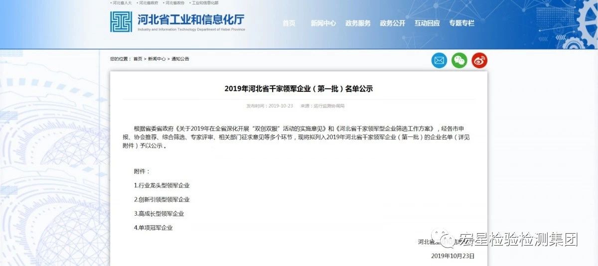 2019年河北省千家領(lǐng)軍企業(yè)(第一批)名單, 宏星檢驗(yàn)檢測(cè)集團(tuán)榜上有名!