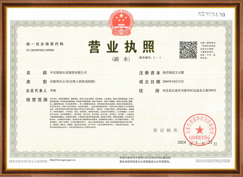 中宏檢驗認(rèn)證集團(tuán)有限公司,簡稱:中宏集團(tuán)(CHIC),原河北宏星檢測公司,2004年點隨夢想,輝煌啟程,2017年升級為宏星集團(tuán),2020年更名為中宏檢驗認(rèn)證集團(tuán)有限公司。公司是集建筑工程、交通工程、人防工程、水利工程、測繪測量、計量校準(zhǔn)、司法鑒定、防雷檢測、消防檢測、檢測培訓(xùn)、電梯安裝維保、勞務(wù)派遣以及認(rèn)證認(rèn)可服務(wù)等質(zhì)量基礎(chǔ)設(shè)施的一站式綜合服務(wù)機(jī)構(gòu)為一體的檢驗認(rèn)證集團(tuán)。